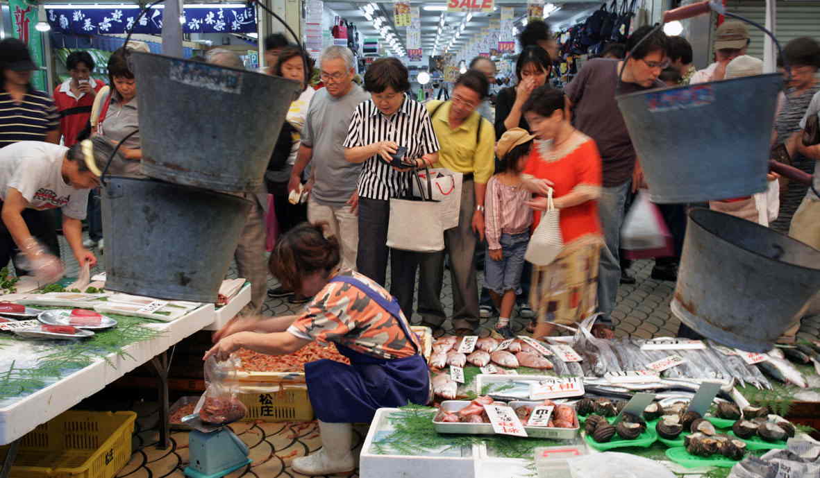 | タコが道を横切り、魚がカゴの上で跳ね回る! そんな昼市の魚がずらり勢揃い! タイ・タコで有名な明石の魚を扱う明石浦漁協では「少しでも鮮度の良い物を消費者へ届けよう」と、昼の11時半からセリを始めます。これが有名な明石の"昼市"です。 店主である私は、毎日、浜へ出向き、セリ台に立って魚をセリ落とします。 魚の棚は漁港にほど近く、セリ落とされた魚は、直ちに店に運ばれ、店頭に並びます。 |